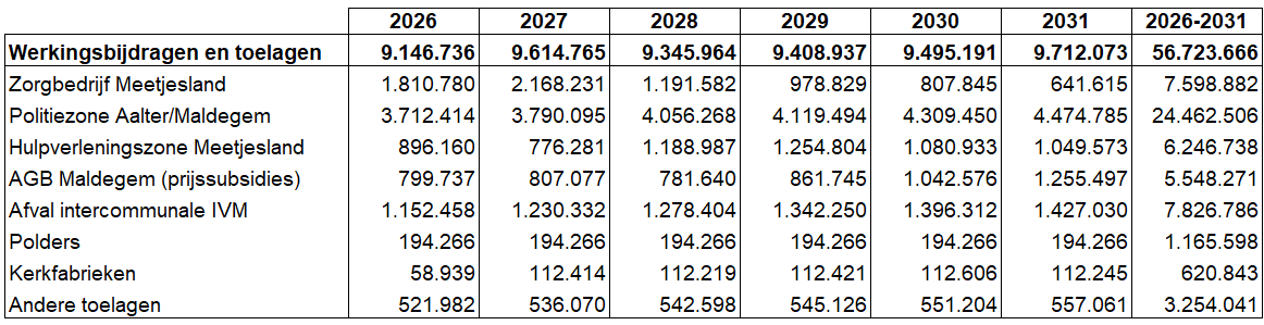 De werkingssubsidie voor de afval-intercommunale stijgt ook significant, dit door hogere kosten voor exploitatie en investeringen, maar ook door de extra ophalingen van de GFT (GroenFruitTuinafval) containers van 1 januari 2026.