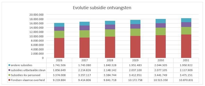 De belangrijkste subsidieontvangsten van de Vlaamse overheid zijn de volgende: