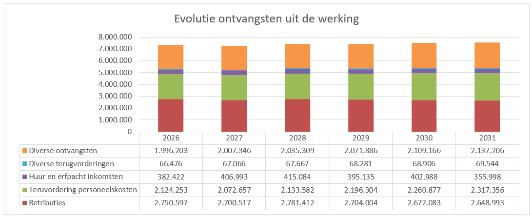 De bijdrage op transport van afvalwater, die via de waterfactuur wordt geïnd, zit in de rubriek diverse ontvangsten en wordt in 2026 geraamd op 1,8 miljoen euro. Deze is fors gestegen sinds 2025 door een eenmalige hogere indexering.