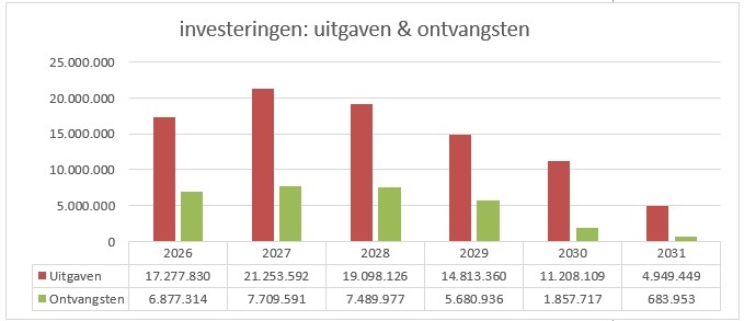 De gemeente en het OCMW zullen voor 58 miljoen euro investeren in deze legislatuur (2026-2031). Daarnaast financiert de gemeente ook de investeringen die door het AGB Maldegem worden uitgevoerd via een toegestane lening. Het AGB zal voor 12 miljoen investeren, en dit vooral in de bouw van een nieuw cultuurhuis.