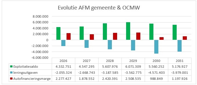 - de autofinancieringsmarge is een criterium voor de beoordeling van het structureel evenwicht. Ze moet in principe steeds over een langere termijn beoordeeld worden. Deze moet in het laatste jaar van het meerjarenplan, dus 2031, positief zijn.