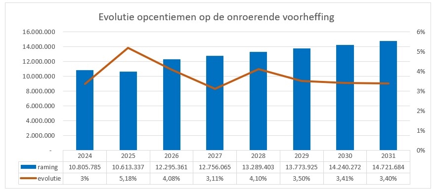De stijging van de opcentiemen leidt tot een gemiddelde stijging van 8,6% van de totale te betalen onroerende voorheffing.
