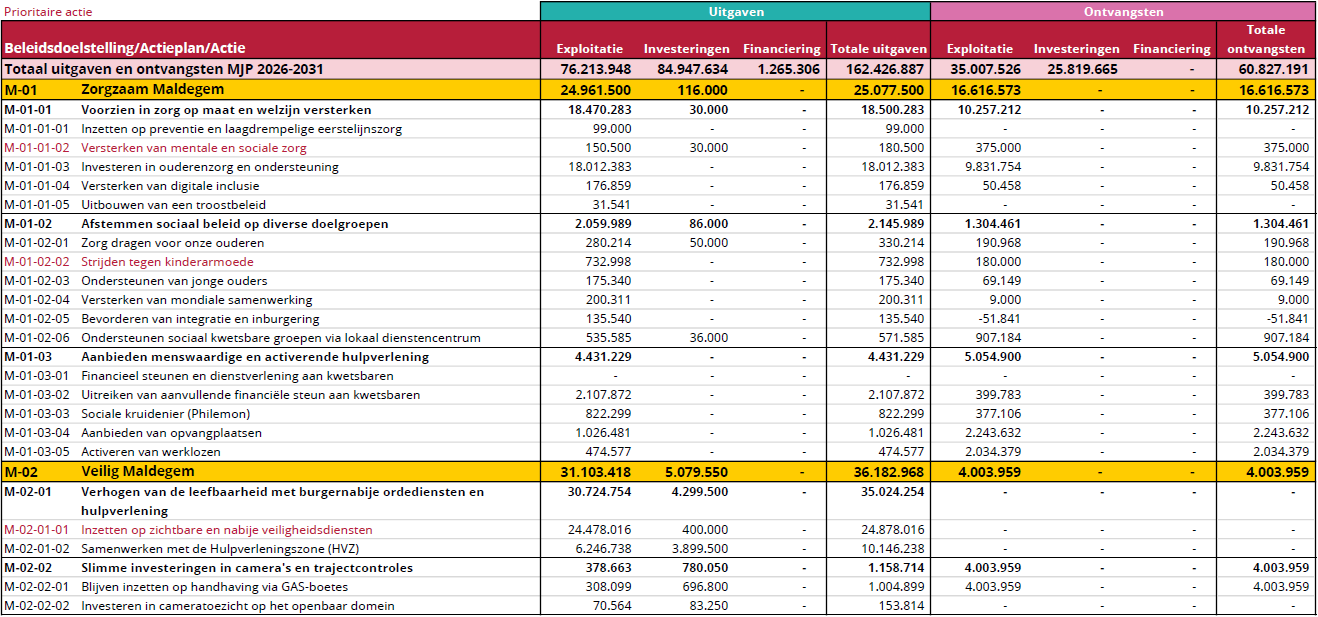 Overzicht van alle beleidsdoelstellingen, actieplannen en acties die opgenomen zijn in het meerjarenplan, met de bijbehorende ramingen van uitgaven en ontvangsten. zoals geraamd voor alle jaren samen.