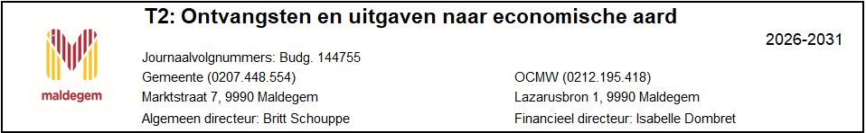 Schema T2: Overzicht van ontvangsten en uitgaven naar economische aardTerug naar navigatie - Overzicht van ontvangsten en uitgaven naar economische aard (T2) - Schema T2: Overzicht van ontvangsten en uitgaven naar economische aard