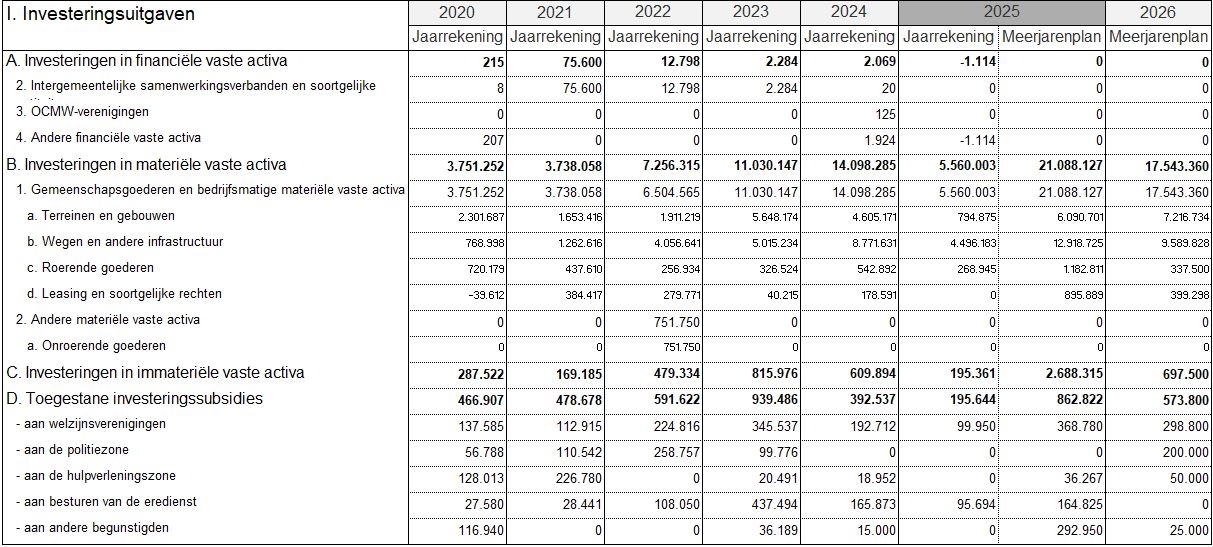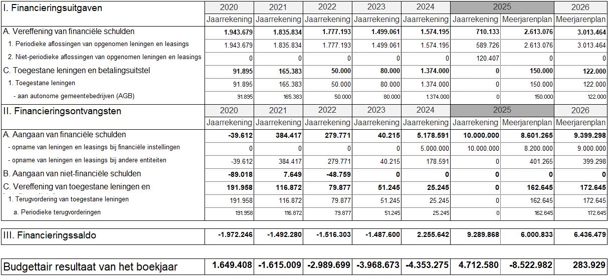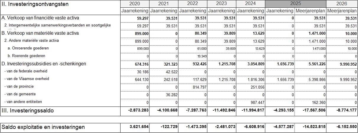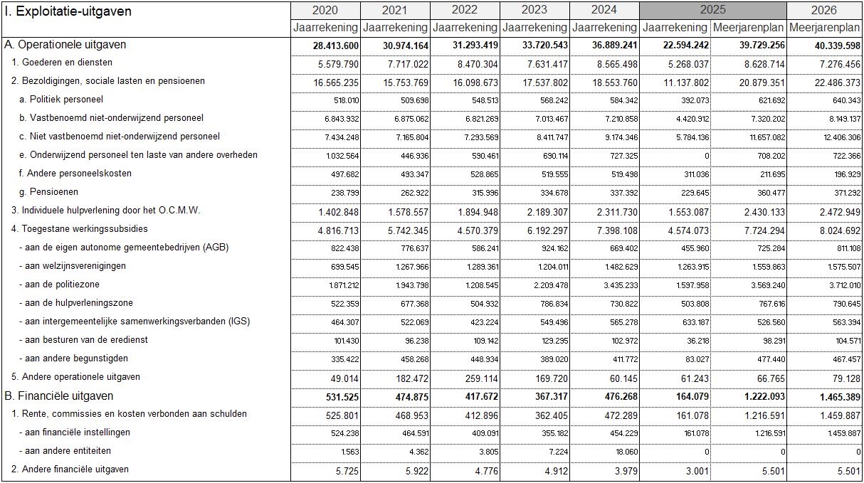 De cijfers opgenomen in de kolom meerjarenplan (=budget) zijn deze volgens laatst goedgekeurde kredietverschuivingen.